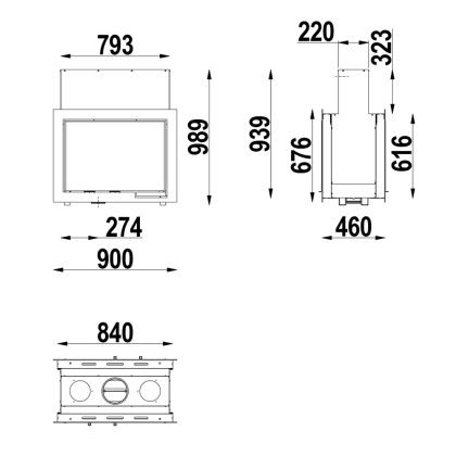 Scan DSA 12 jest wkładem kominkowym z szybami od przodu i tyłu umożliwiającymi obserwowanie ognia z obu stron „na przestrzał”.